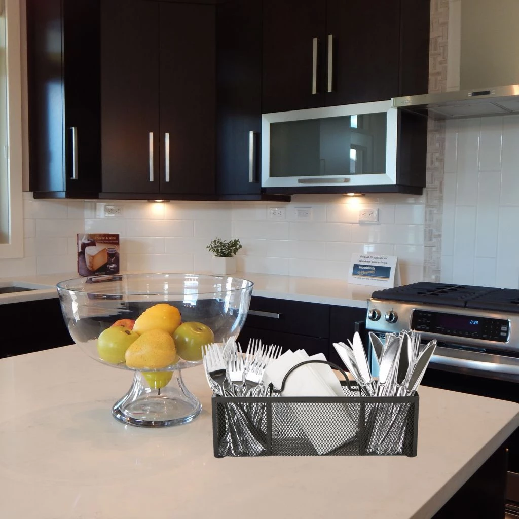 - Mesh cutlery caddy color: Black