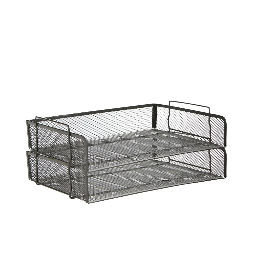 Mind Reader Metal Mesh Tray Holder and Desk Document Organizer Set, 2 pc., Black, DSTACK2-BLK
