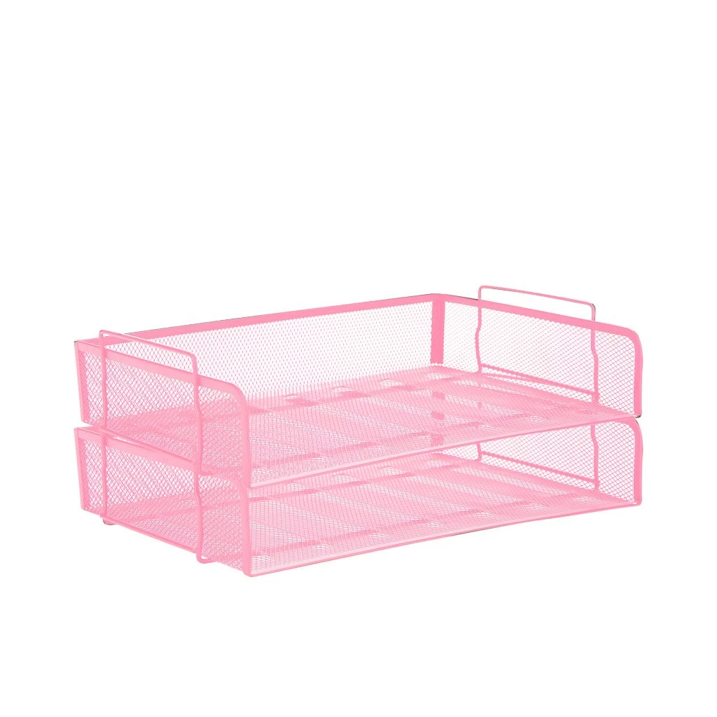 Mind Reader Metal Mesh Tray Holder and Desk Document Organizer Set, 2 pc., Pink, DSTACK2-PNK