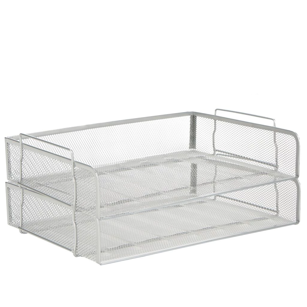 Mind Reader Metal Mesh Tray Holder and Desk Document Organizer Set, 2 pc., Silver, DSTACK2-SIL